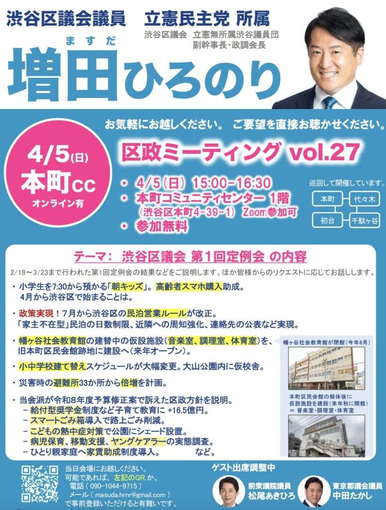 4/5(日) 増田ひろのり区政MTG vol.27 at本町CC